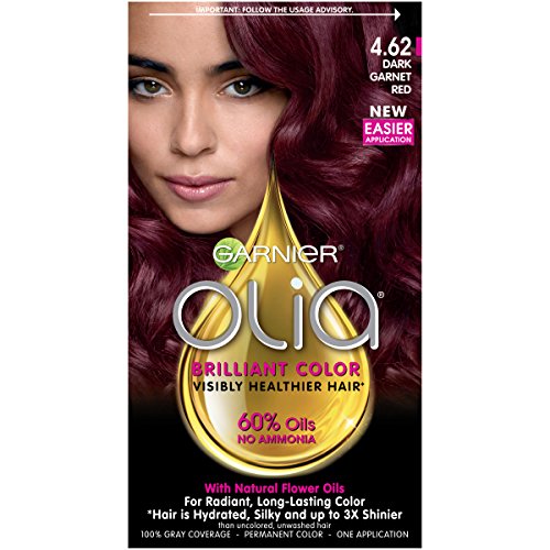 The Olia shade 4.62 Dark Garnet Red is a permanent hair color that is powered by oil and does not contain ammonia. It is specifically designed to provide deep red color results with burgundy reflects that resist fading and stay true to tone, ensuring long-lasting vivid, radiant color for all hair textures. This hair color is best suited for those with natural hair between light brown and black and provides 100% gray coverage.