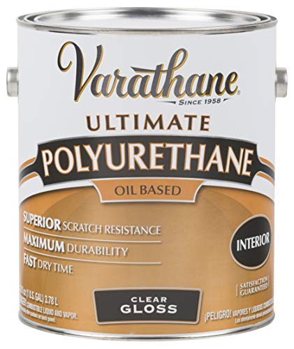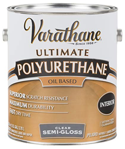 The Gallon Semi Gloss Interior Oil-Based Premium Polyurethane by Varathane is an excellent product to enhance the beauty and protection of all types of interior wood surfaces. Made in the United States, this product produces an elegant and smooth finish that beautifies and protects your furniture, cabinets, floors, paneling, doors, trim, and even bar tops.