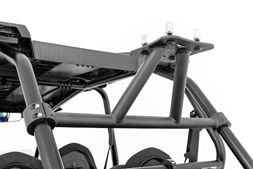 Rack size: 28"x11.5" stud size: 12mmx1.5 mounts to tube cage. mounts high on the cage for increased visibility and cargo space. allows up to 30in tire.