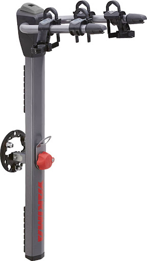 The thule t2 classic 2 bike hitch rack safely transports our favorite enduro sleds, fat tire steeds, and even road bikes. in fact, this versatile rack secures bikes ranging from smaller 20-inch versions all the way up to 29-inch wheels, holding massive tires up to 5 inches wide on fat-tire bikes. contact-free ratcheting arms secure the front tires without scratching up our carbon frames. wider wheel trays accommodate a wide variety of bikes, with a ratcheting rear-wheel strap keeping the rear end firmly secure. these trays are fully adjustable, allowing us to slide them back and forth to eliminate any bike rubbing. the snugtite attachment locks the rack to the hitch, so thieves won't take off with your sweet rack. one key system compatibility (sold separately) allows the ratcheting arms to lock down over your bike's front tire to deter theft. plus, its hitchswitch gives you the ability to fold it up when it's not in use, also providing a backward tilt for rear-trunk access without painstakingly unloading the bikes.